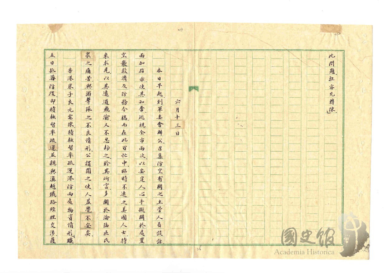 {#宋子良#}電{#蔣中正#}抵海防後即積極督率疏運並親與滇越鐵路經理交涉獲允盡量協助現防處每日可疏運數百餘頓又先後租輪轉仰物資已達萬餘頓另{#張治中#}{#陳布雷#}報告蔣中正敵自稱第三師團全部由武安堰分道至觀音寺遠安後即未見進展等