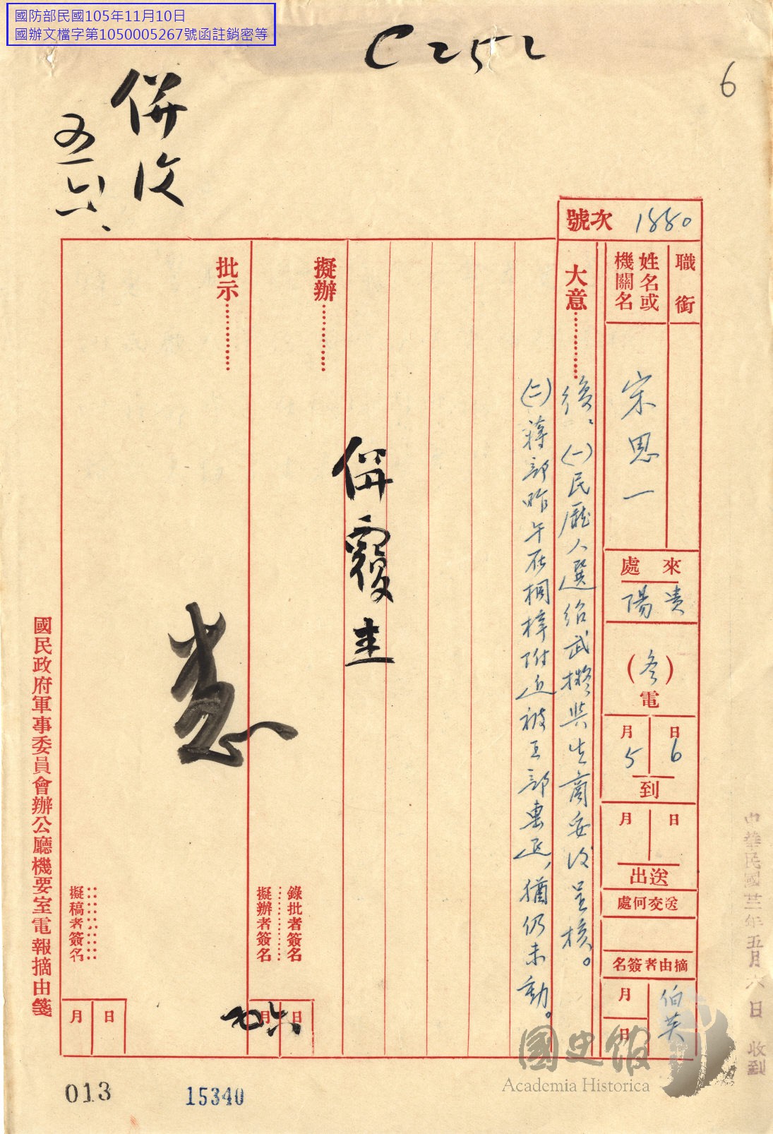 宋思一電蔣中正民政廳人選擬與王家烈商妥後呈核及蔣在珍部為王家烈部擊退猶國才仍未動