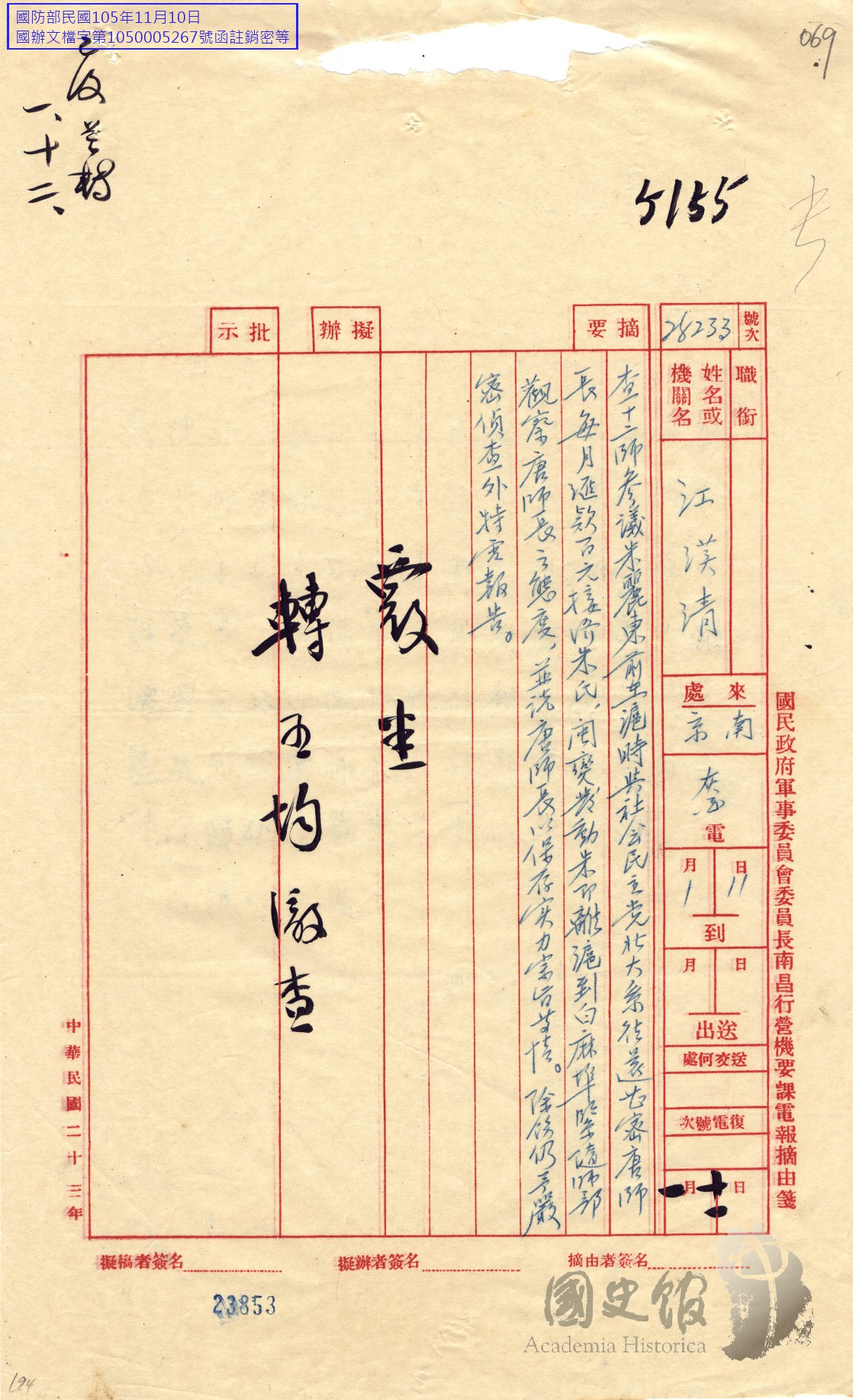 戴笠電蔣中正查朱景暄與社會民主黨北大系往還甚密且受唐淮源接濟等情