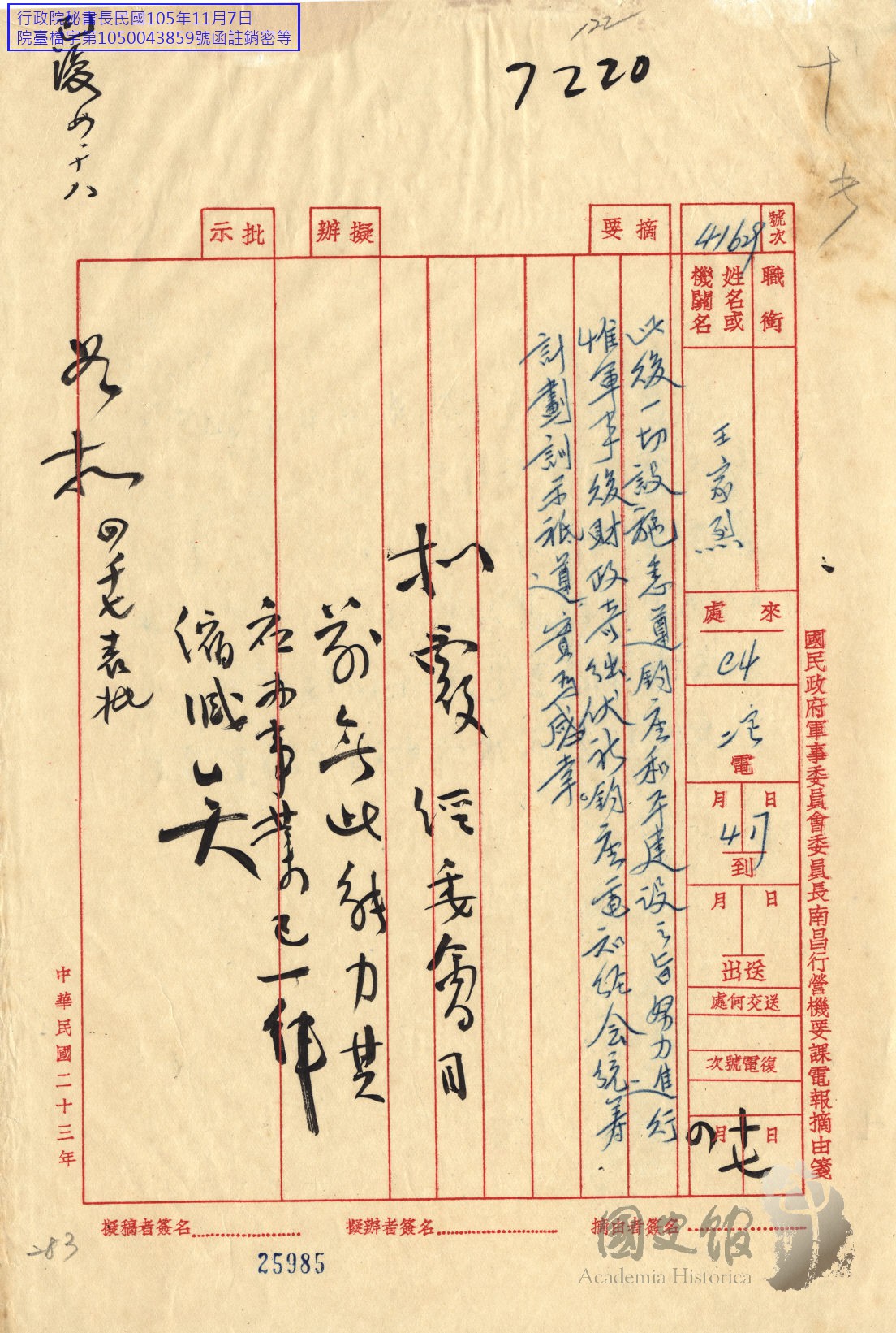 王家烈電蔣中正請飭全國經濟委員會統籌計劃貴州和平建設經費