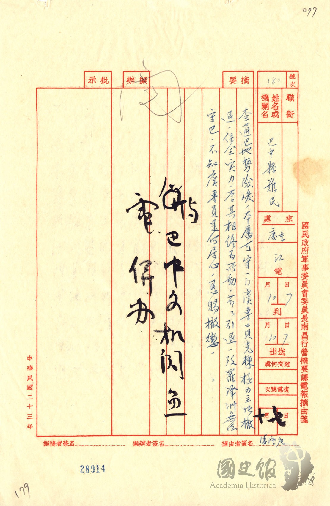 巴中縣難民電蔣中正通巴地勢險峻本屬可守乃虞克棟極力主張撤退致羅澤洲部無法守巴請撤懲之以順人心