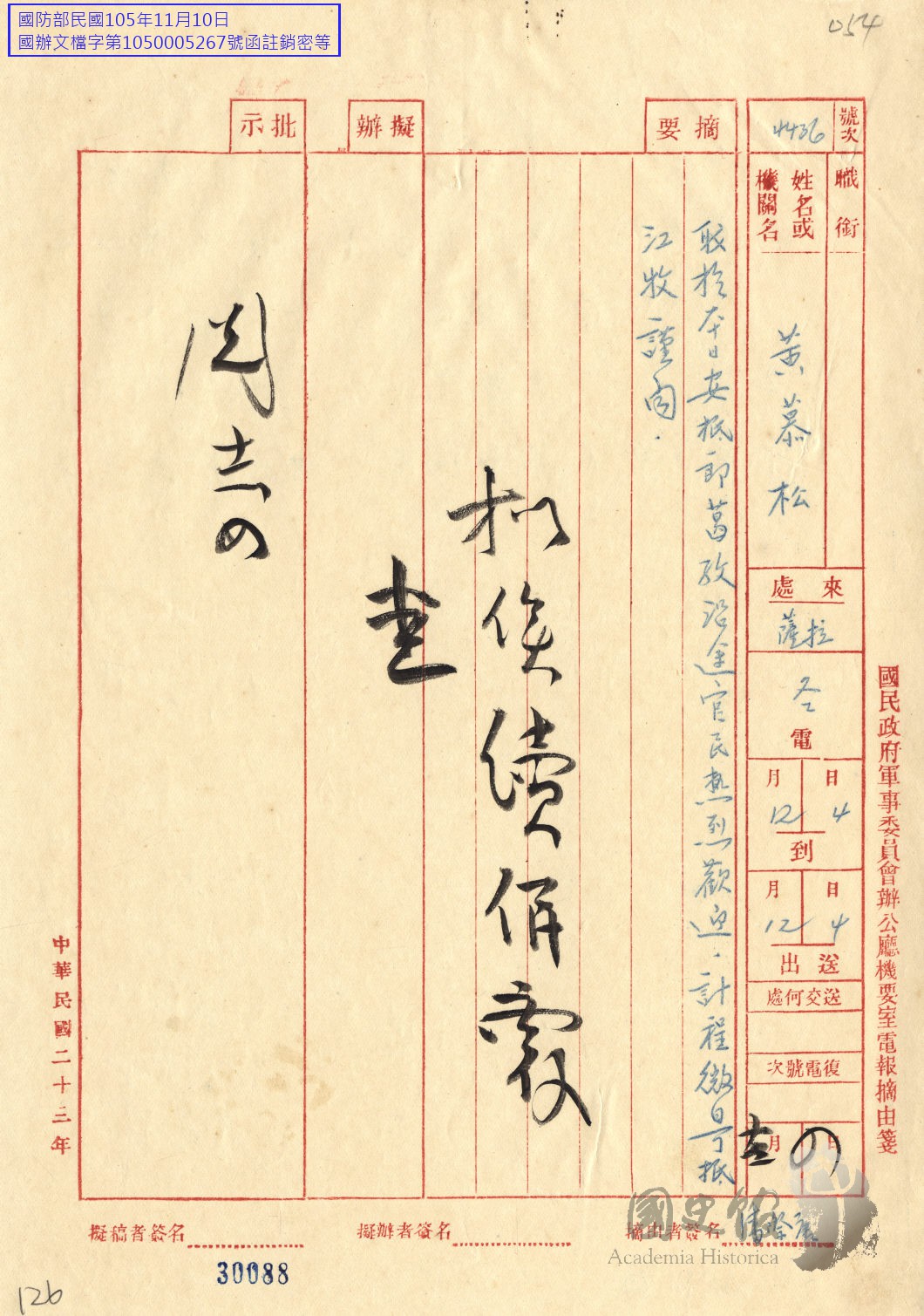 黃慕松電蔣中正汪兆銘本日安抵郎葛孜預定五日可抵江孜