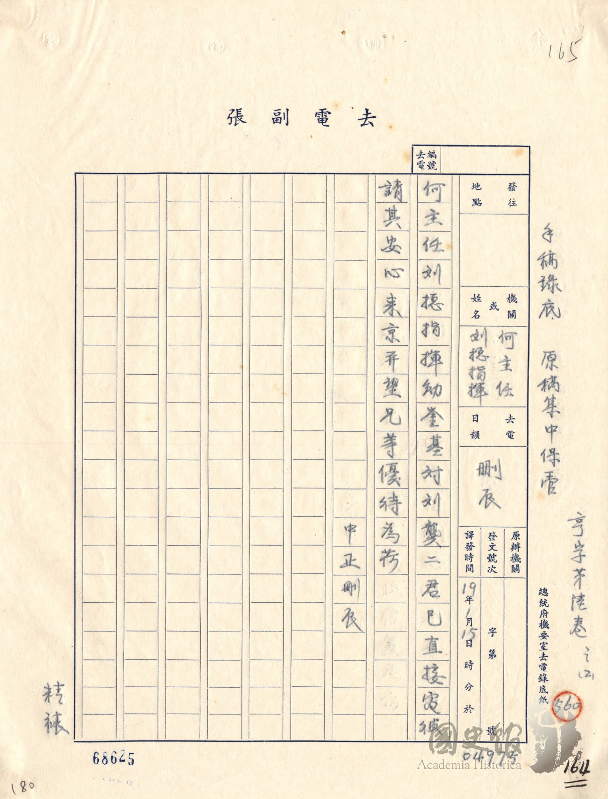 蔣中正電何應欽劉峙已電劉興龔浩安心來南京並請予優待