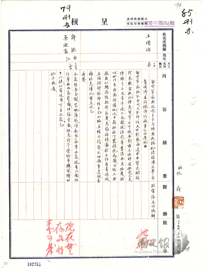 王纘緒等電蔣中正川省留守軍隊與政黨分子及土匪勾結要挾搗亂請飭潘文華負責消弭並指調部隊布防大巴山脈等文電日報表等二則