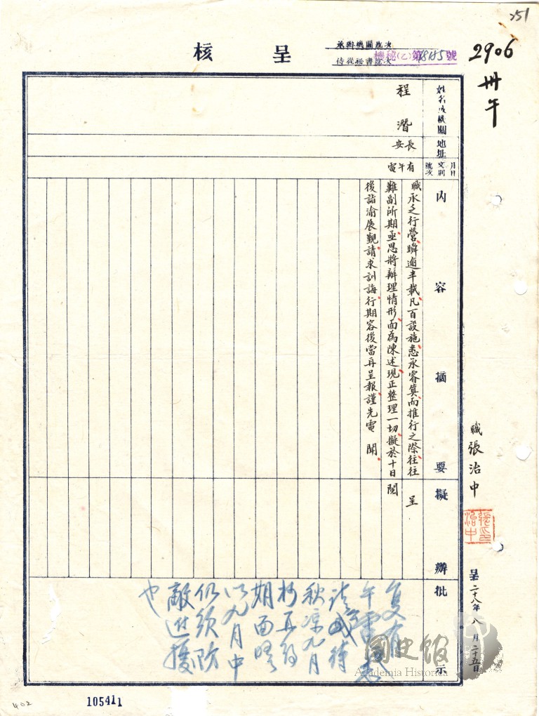 程潛電蔣中正擬於十日後詣渝報告行營辦理情形並請訓文電日報表