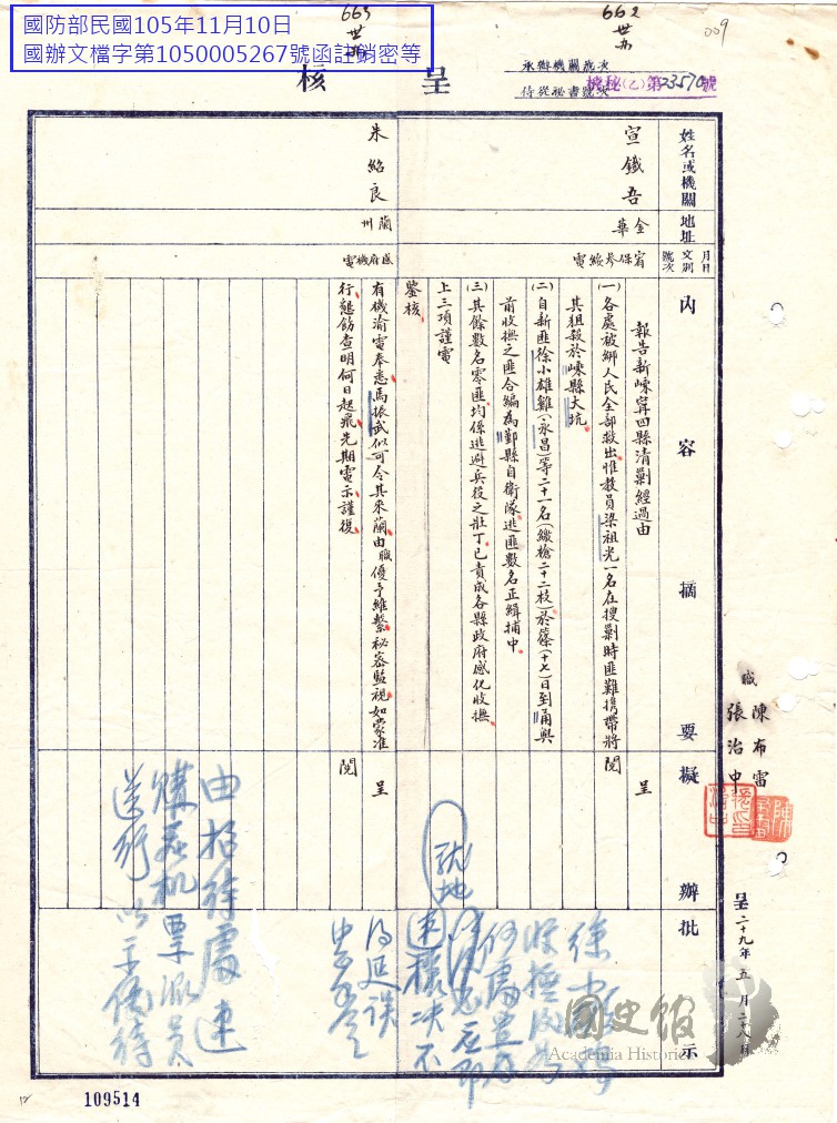 宣鐵吾等電蔣中正報告新嵊寧四縣清剿經過等文電日報表等二則