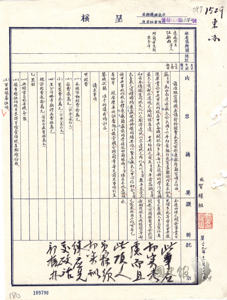 康藏學生江新西等電蔣中正請准組宣傳團並請發給經費武器前赴康藏原籍宣傳工作