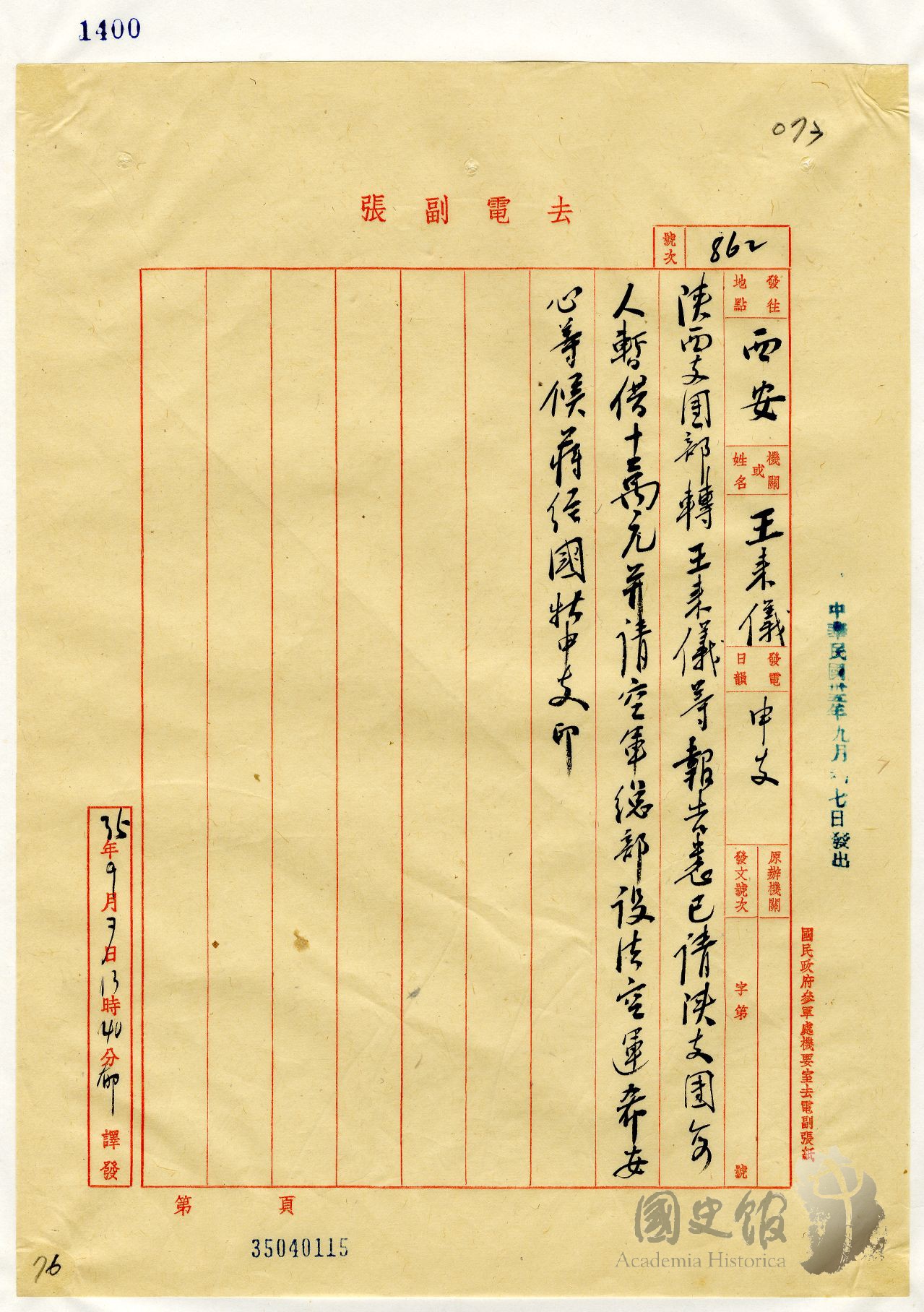蔣經國電王來儀等已請陝支團每人暫借十萬元並請空軍總部設法空運希安心等候
