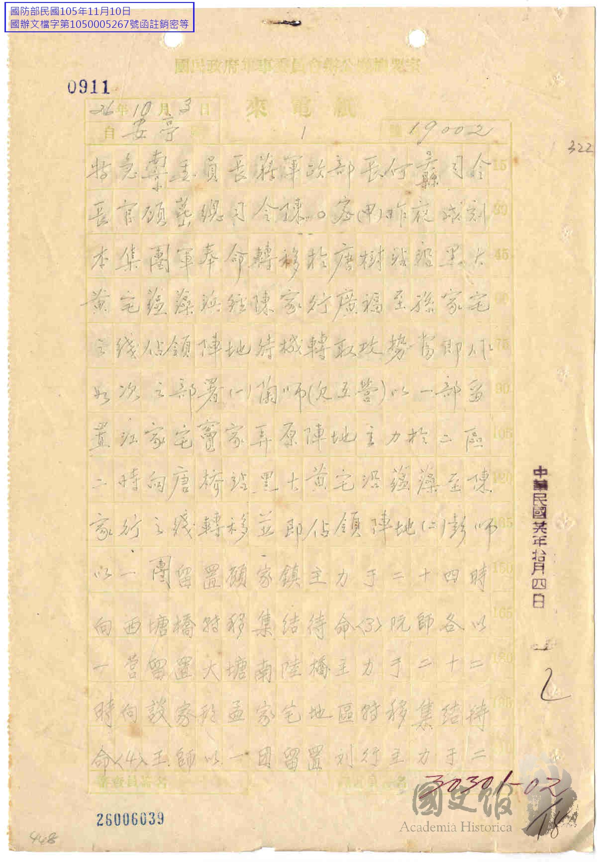 蔣中正總統文物/特交文電/領袖事功/對日抗戰