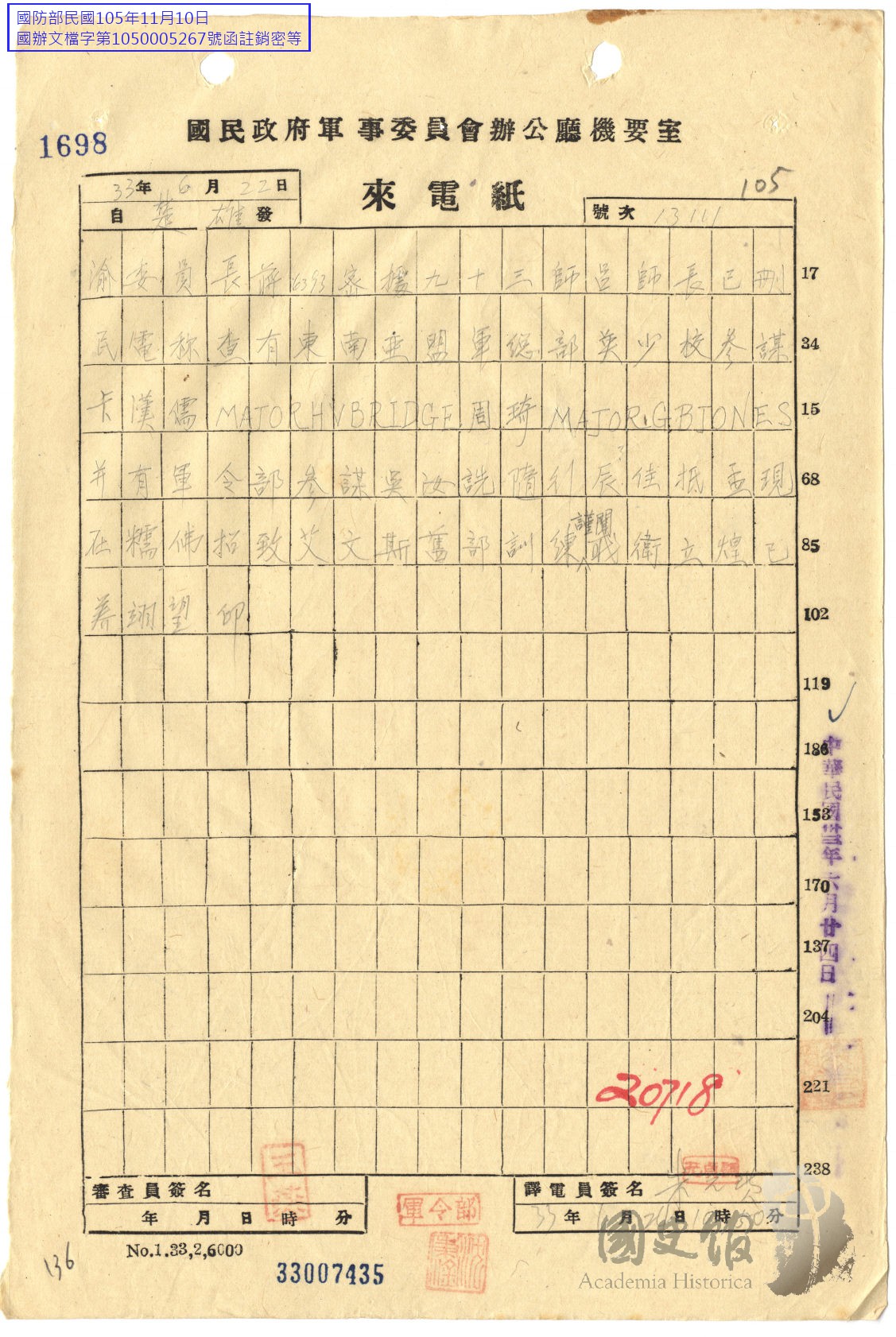 衛立煌電蔣中正東南亞盟軍總部英員在糯佛訓練情形