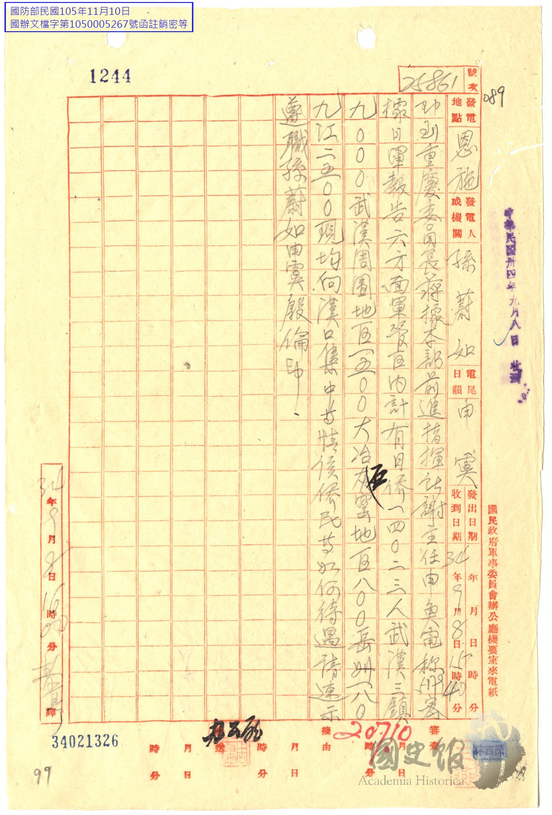 蔣中正總統文物/特交文電/領袖事功/對日抗戰