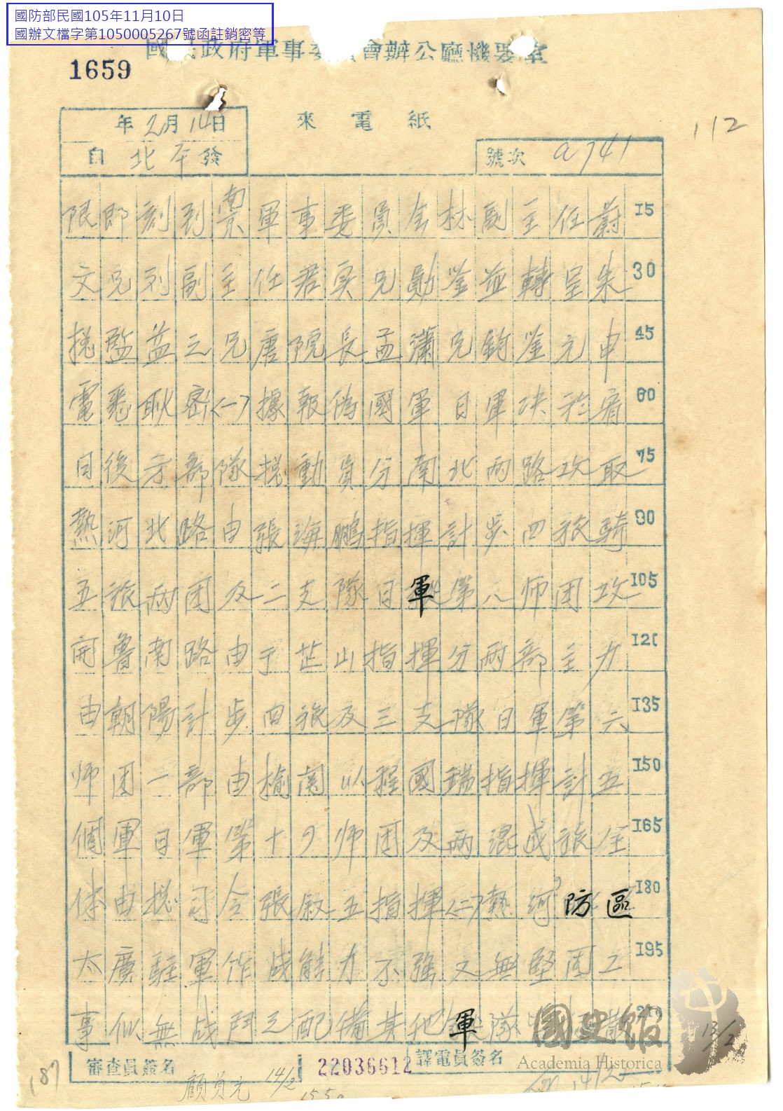 蔣中正總統文物/特交文電/日寇侵略/日寇侵略