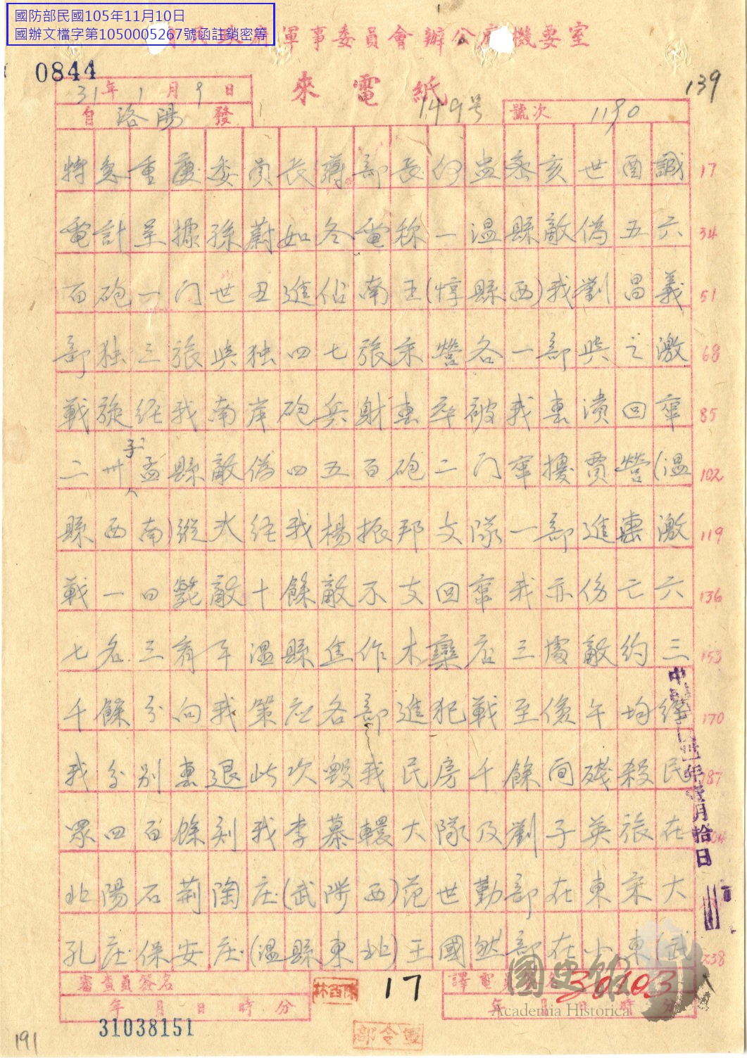 蔣中正總統文物/特交文電/日寇侵略/日寇侵略