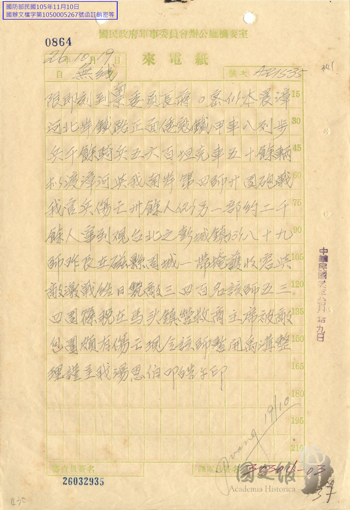 湯恩伯電蔣中正第四師與漳河北岸日軍激戰傷亡三十餘且有一部日軍竄到彭城及八十九師與磁縣固城日軍激戰並於馬頭鎮營救商震後開禹溝整理