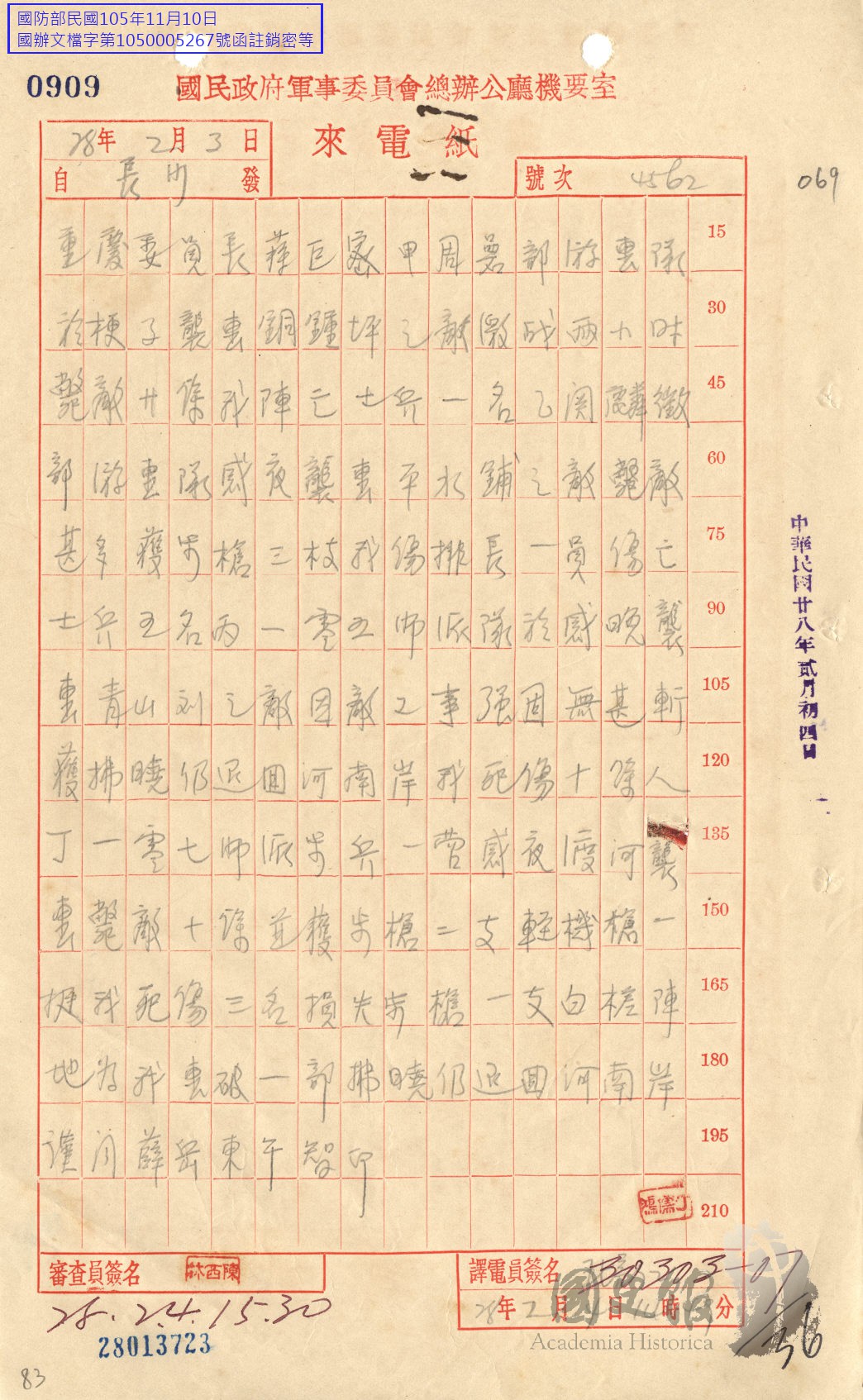薛岳電蔣中正轉報周碞部關麟徵部游擊隊及一○五師等襲擊銅鍾坪平水鋪及青山劉之敵激戰暨雙方傷亡情形