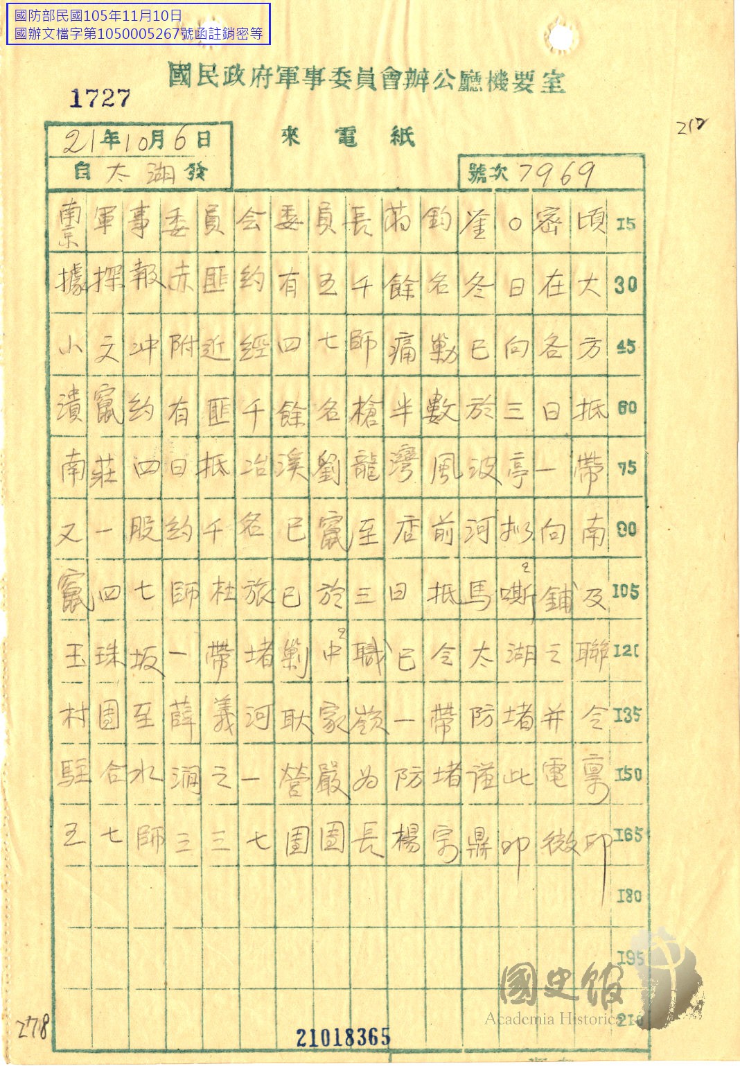 楊宗鼎電蔣中正據探報共軍在大小文沖附近經四十七師痛剿已潰竄有匪三日抵南莊四日抵冶溪劉龍灣風波亭一帶等該師杜旅已抵馬嘶鋪一帶堵剿等