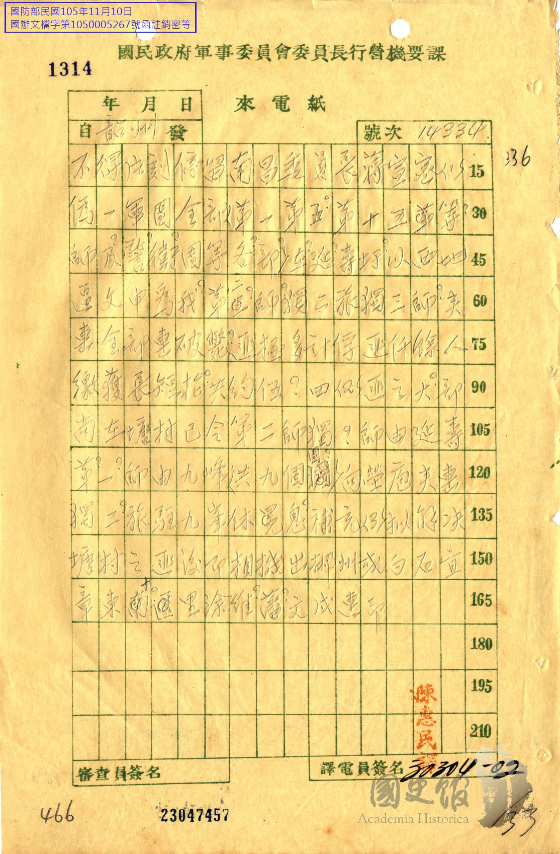 涂維藩電蔣中正偽一軍團第一師等與警衛團在延壽圩以西地區被我全部擊破及匪大部尚在塘村已令第二師由延壽第一師由九峰向塋庖夾擊獨二旅駐九峰整補等情