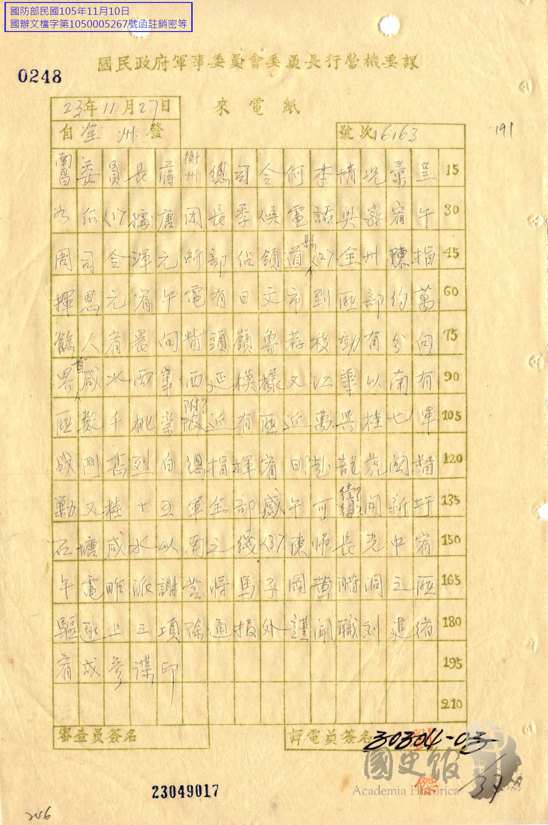 劉建緒電蔣中正何鍵據唐季候報稱周渾元所部已占領道縣及據陳恩元電稱有萬餘匪向寨頭嶺魯荐移動有分向界首咸水西竄西延模樣等情