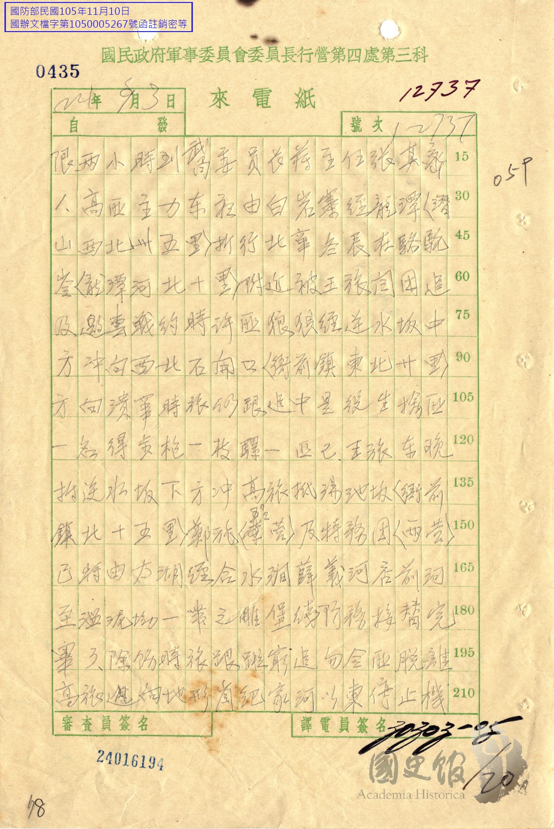 梁冠英電蔣中正張學良稱高詠生主力由白岩寨經龍潭折行北竄二日在駱駝嶺被王修身旅追擊激戰匪經逆水阪中方沖向石開口潰竄現時德學旅仍跟追中等