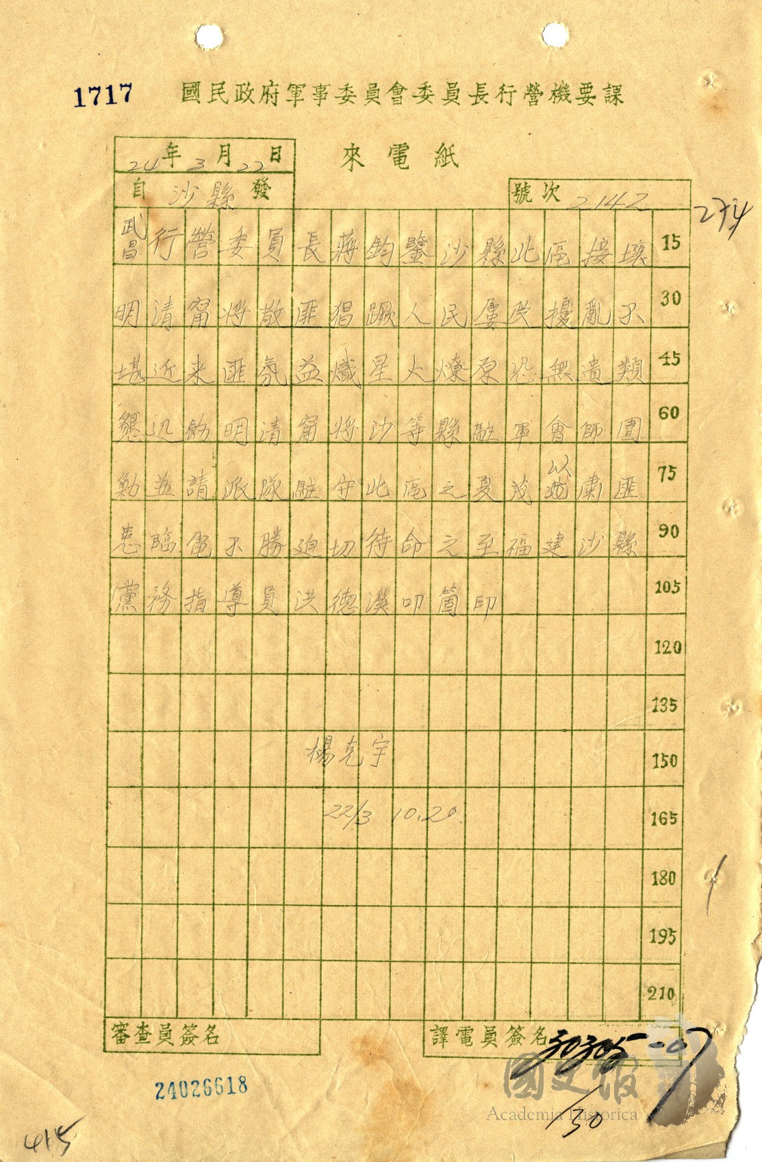 洪德溪電蔣中正稱沙縣人民受匪擾亂且北區匪氛益熾請速飭沙縣將樂等縣駐軍會師圍剿並請派隊駐夏茂以肅清匪患