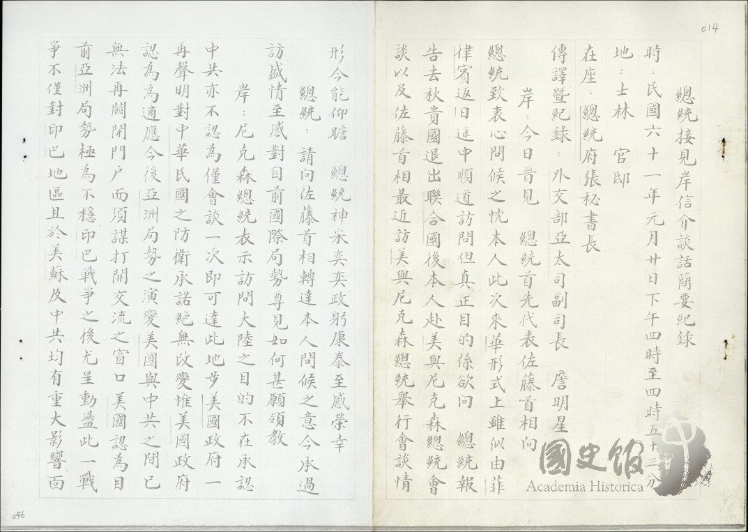 蔣中正接見日本前總理大臣岸信介談話紀錄