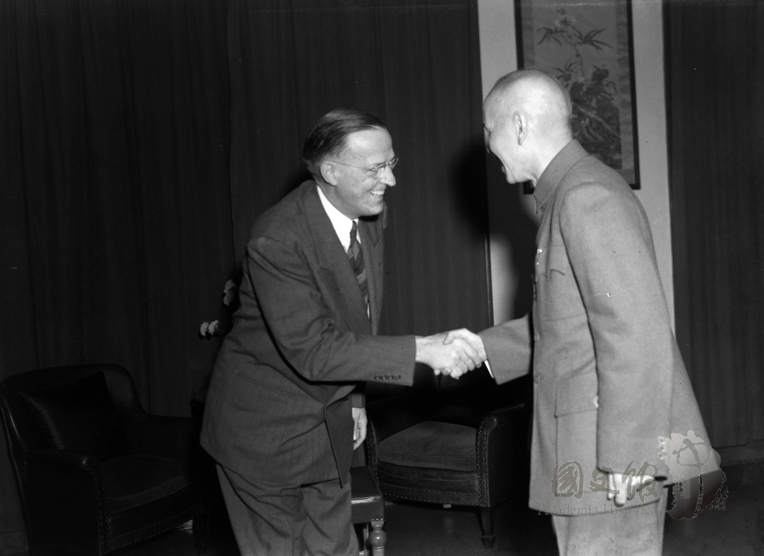 國民政府主席蔣中正與美國眾議員Walter H. Judd(周以德)握手
