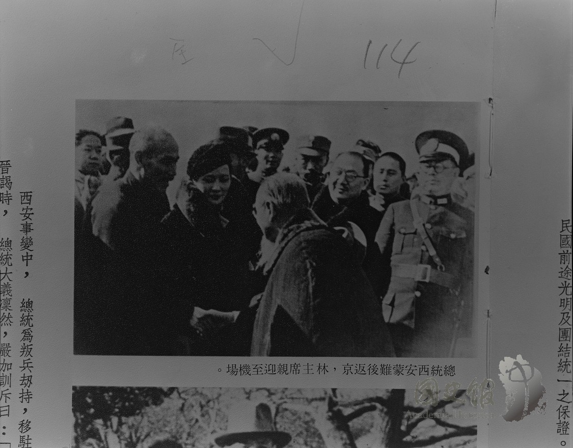 國民政府主席林森至機場親迎軍事委員會委員長蔣中正西安蒙難後返京