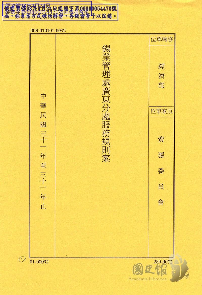 錫業管理處廣東分處服務規則案
