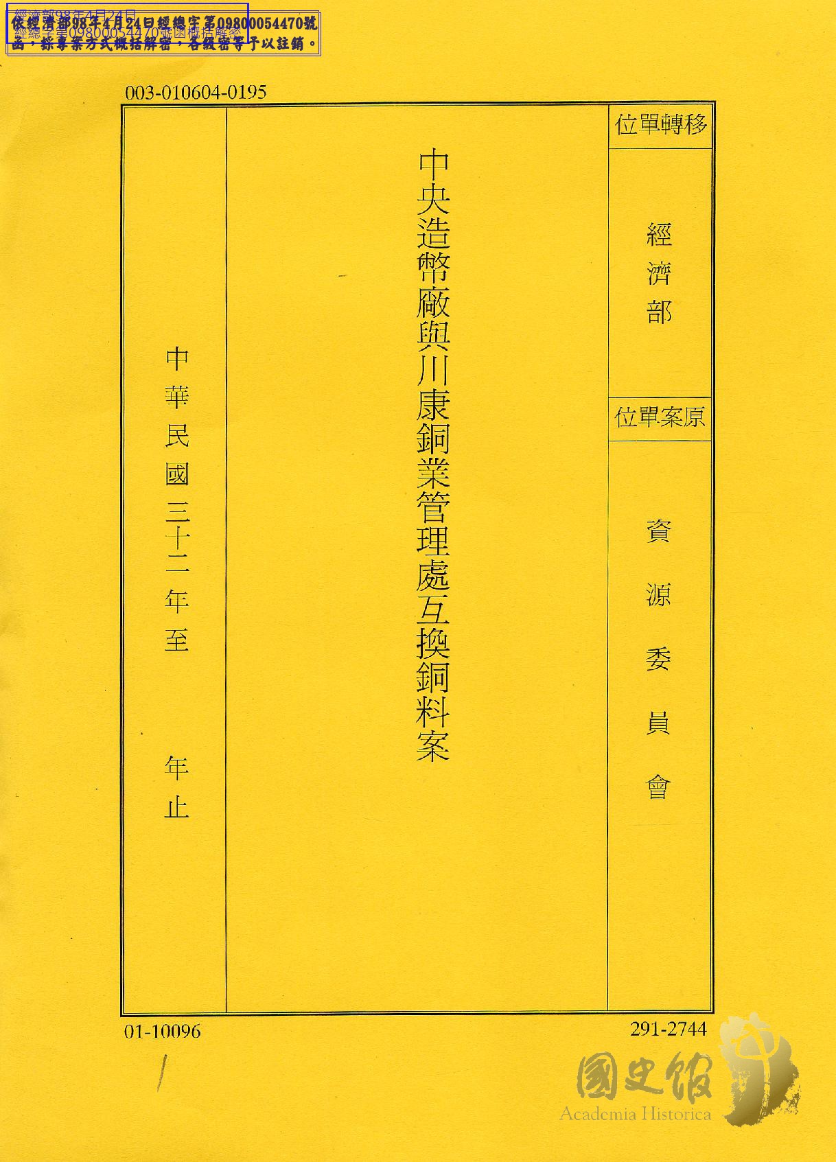 中央造幣廠與川康銅業管理處互換銅料案