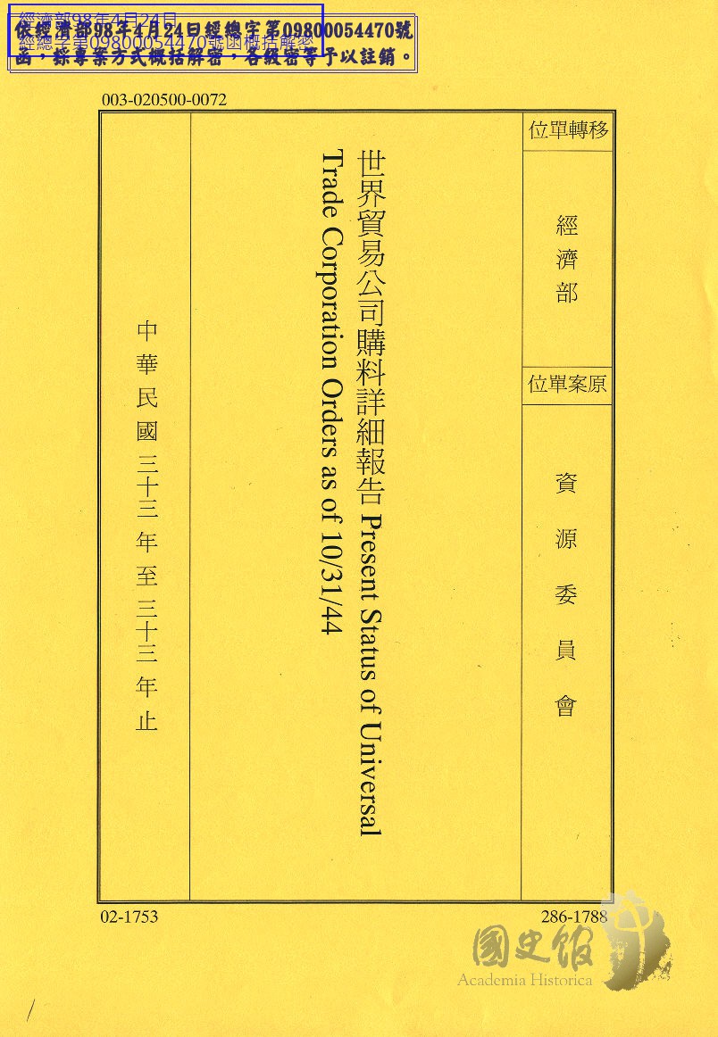 世界貿易公司購料詳細報告Present Status of Universal Trade Co