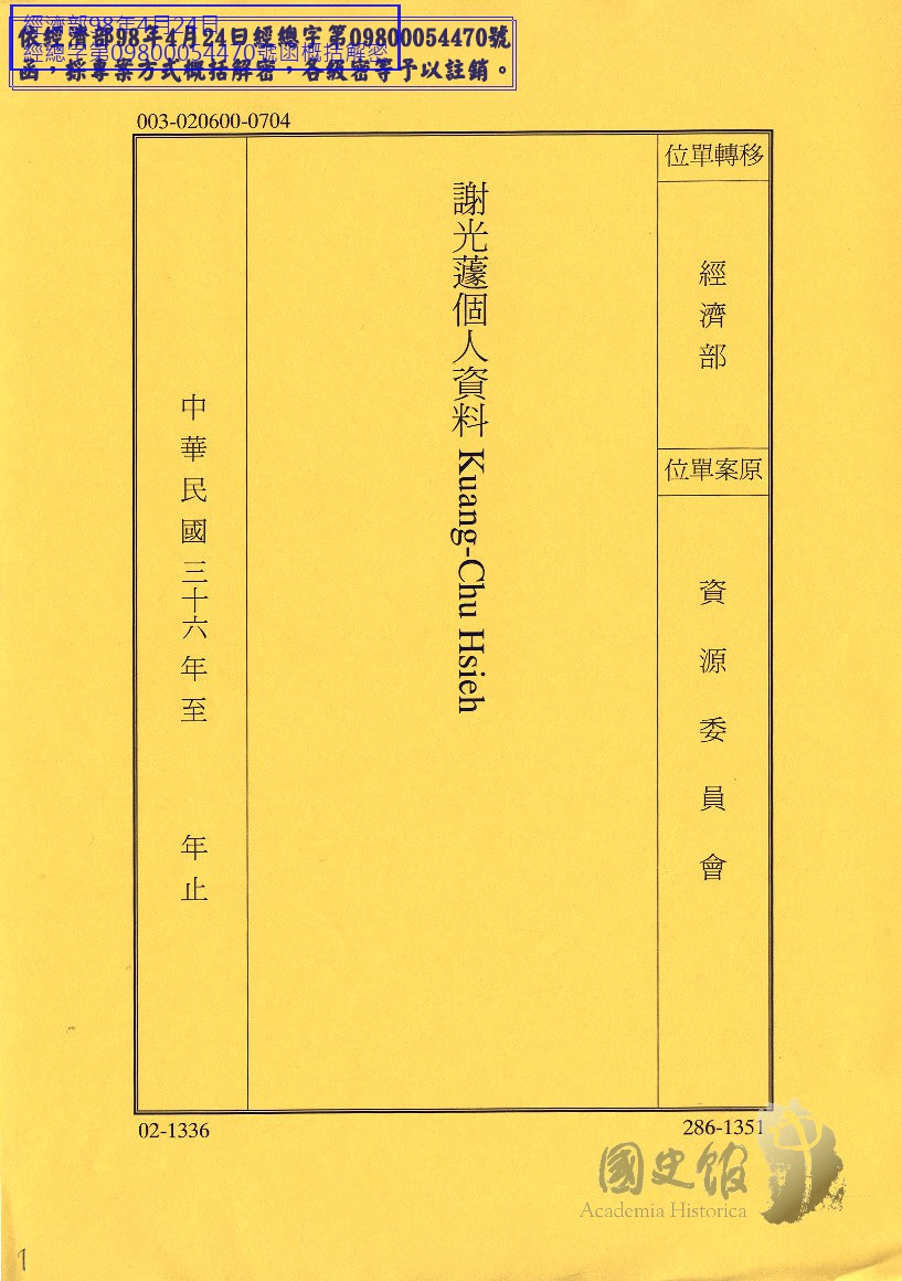 久大鹽業公司{#謝光蘧#}前後經駐美技術團及駐美代表辦事處訓練部門的安排完成J. E. Seagram與Pabst Brewing公司實習工作並經主管機關同意呈請經濟部核准延期留美一年,謝光蘧一九四六年一月至五月實習月報表等