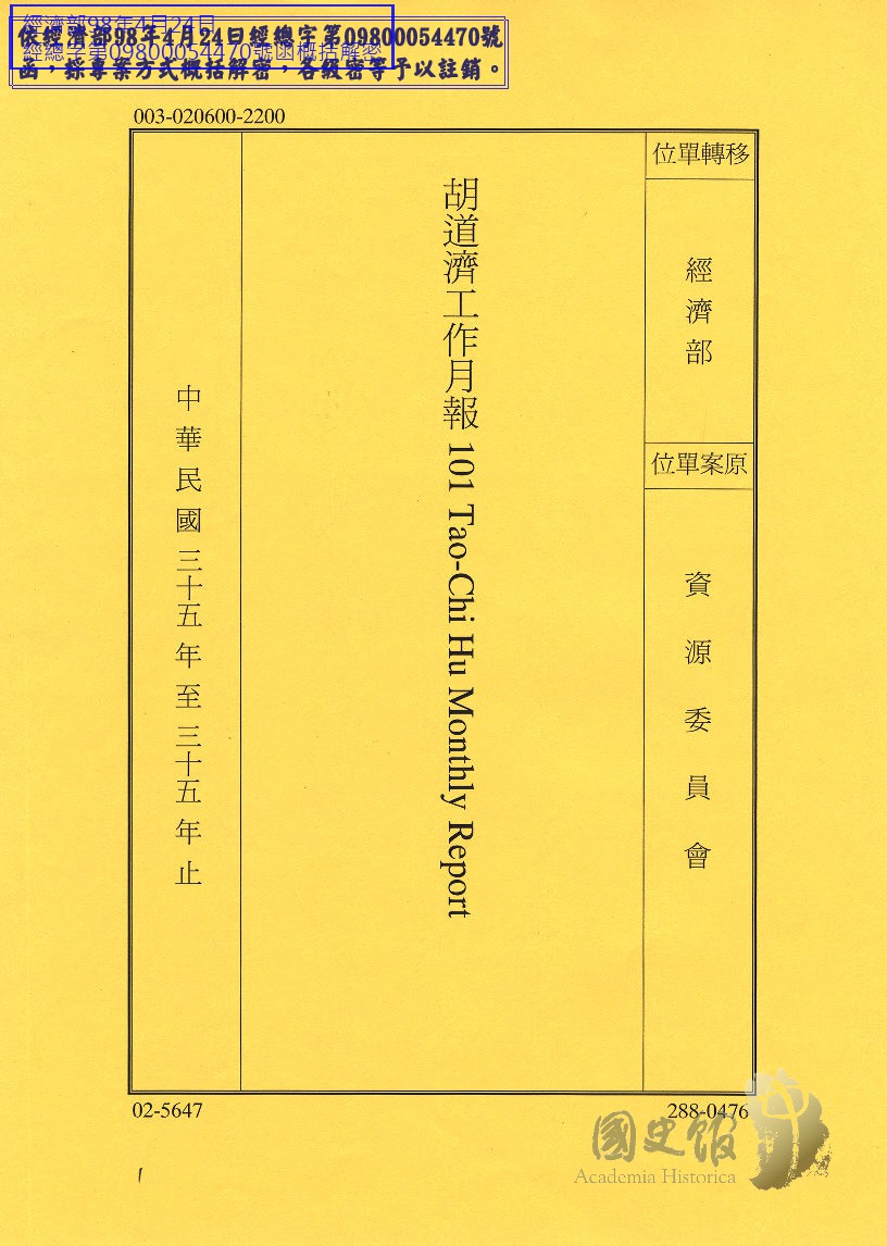 胡道濟工作月報101 Tao-Chi Hu Monthly Report