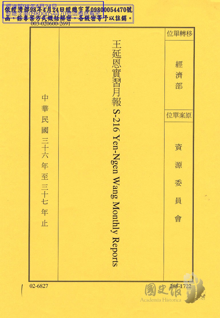王延恩實習月報S-216 Yen-Ngen Wang Monthly Reports