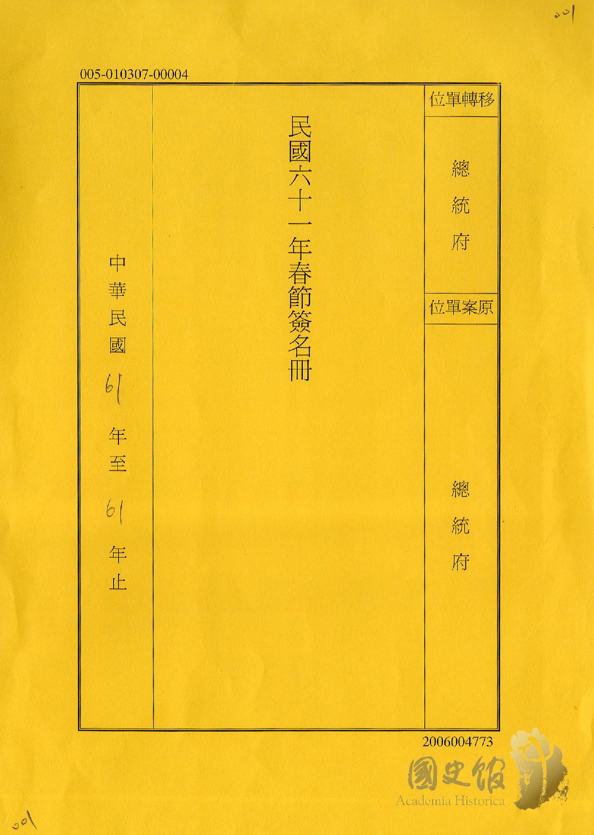 民國六十一年春節簽名冊