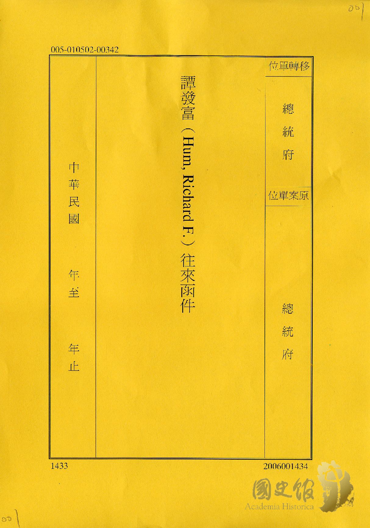 美國駐華大使館國防武官譚發富轉知蔣經國關於美國太平洋空軍司令克萊之雙十賀電另其代表武官處全體人員慶賀國慶等