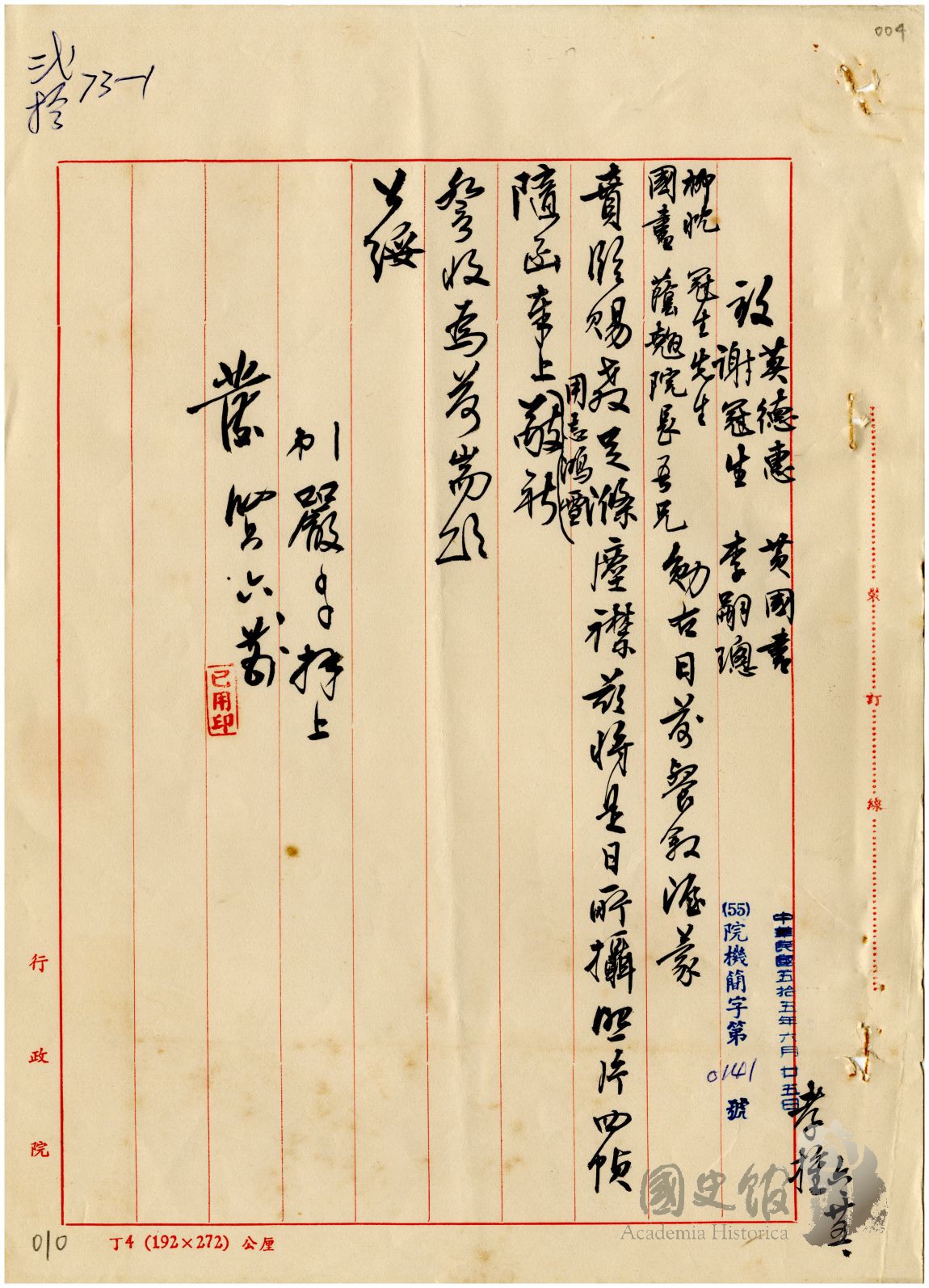 嚴家淦總統文物/文件/行政院長時期(1963-12至1972-06)/函電