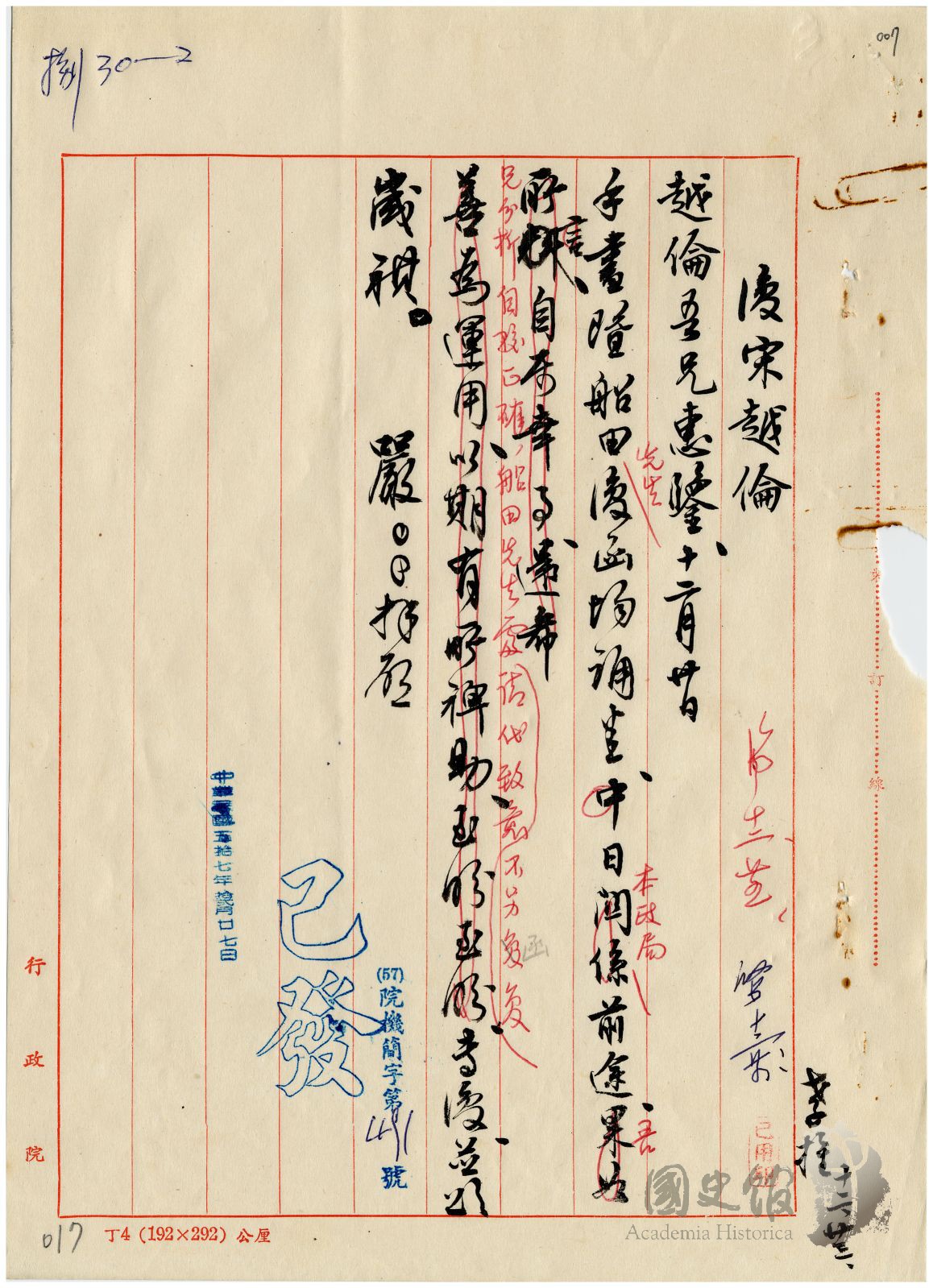 嚴家淦總統文物/文件/行政院長時期(1963-12至1972-06)/函電