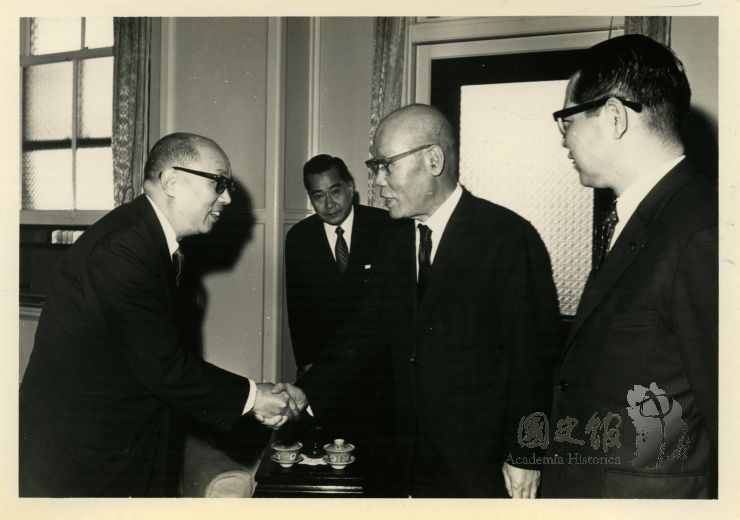 副總統兼行政院長{#嚴家淦#}接見中日合作策進會日方常務委員{#矢次一夫#}