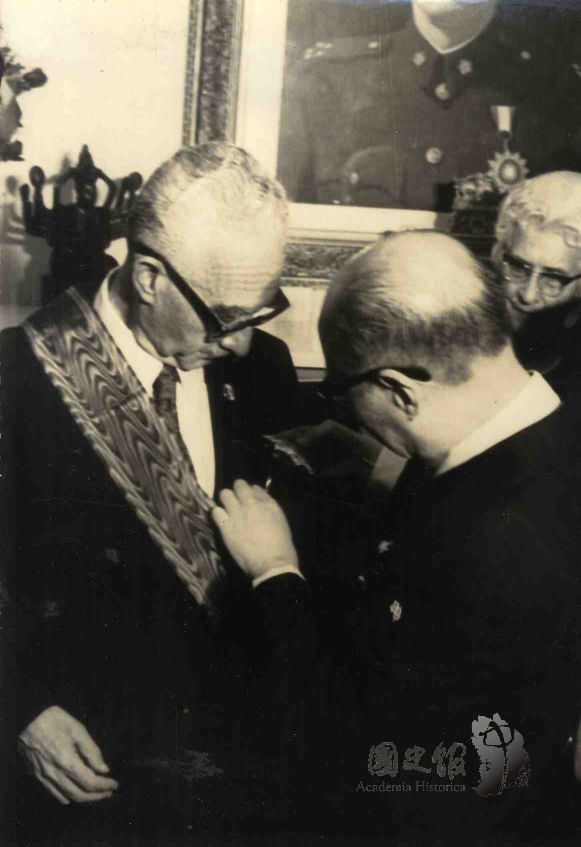 副總統{#嚴家淦#}授勳予瓜地馬拉國防部長{#Fausto David Rubio Coronado(魯比奧)#}、衛生部長{#Jose Trinidad Ucles Ramirez(鄔克萊斯)#}及最高法院院長{#Miguel Ortiz Passarelli(歐狄斯)#}