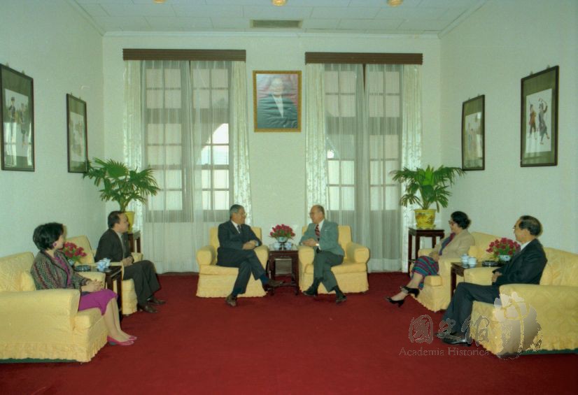 副總統{#李登輝#}接見國際扶輪社社長{#M.A.T. Caparas(柯百樂)#}夫婦等人