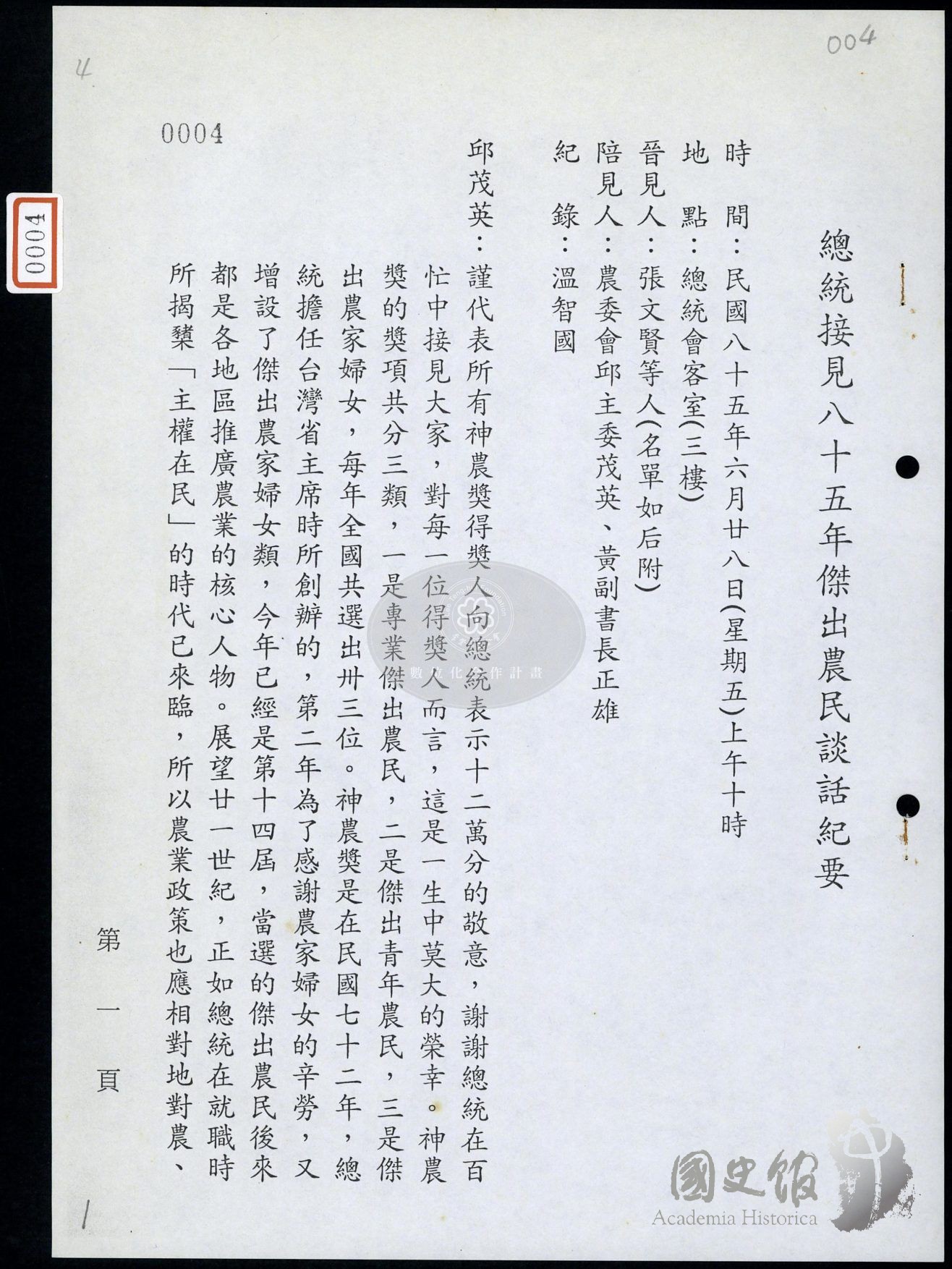 李登輝總統文物/李登輝基金會捐贈檔案史料/談話紀要/