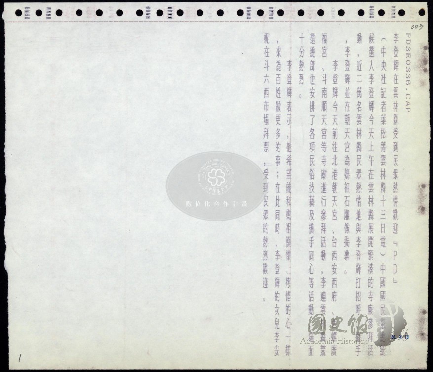 總統李登輝競選連任勝選報導彙編(三)