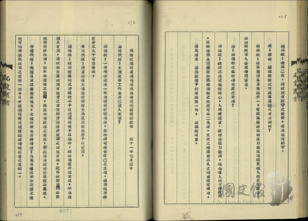 陳誠與倫敦觀察者週刊通訊員布拉沃斯談話紀要