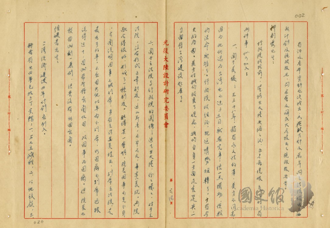 四十六年陳誠召集柳克述等歷次談話紀錄上
