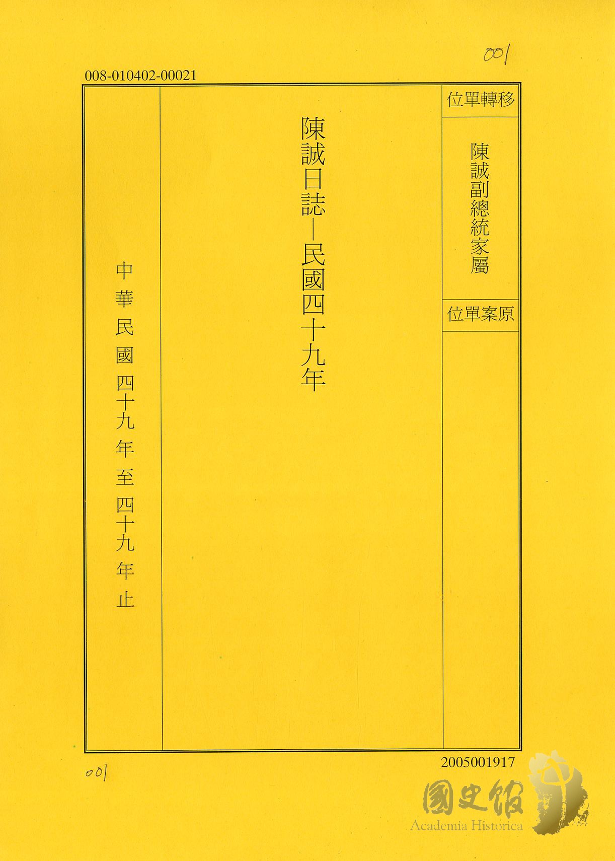 陳誠副總統文物/文件/行誼/大事記與日誌