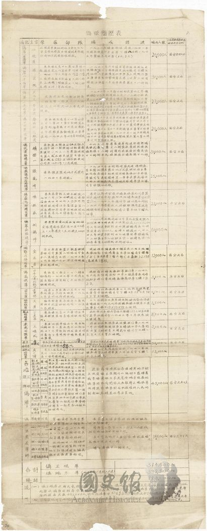 偽軍簡歷表