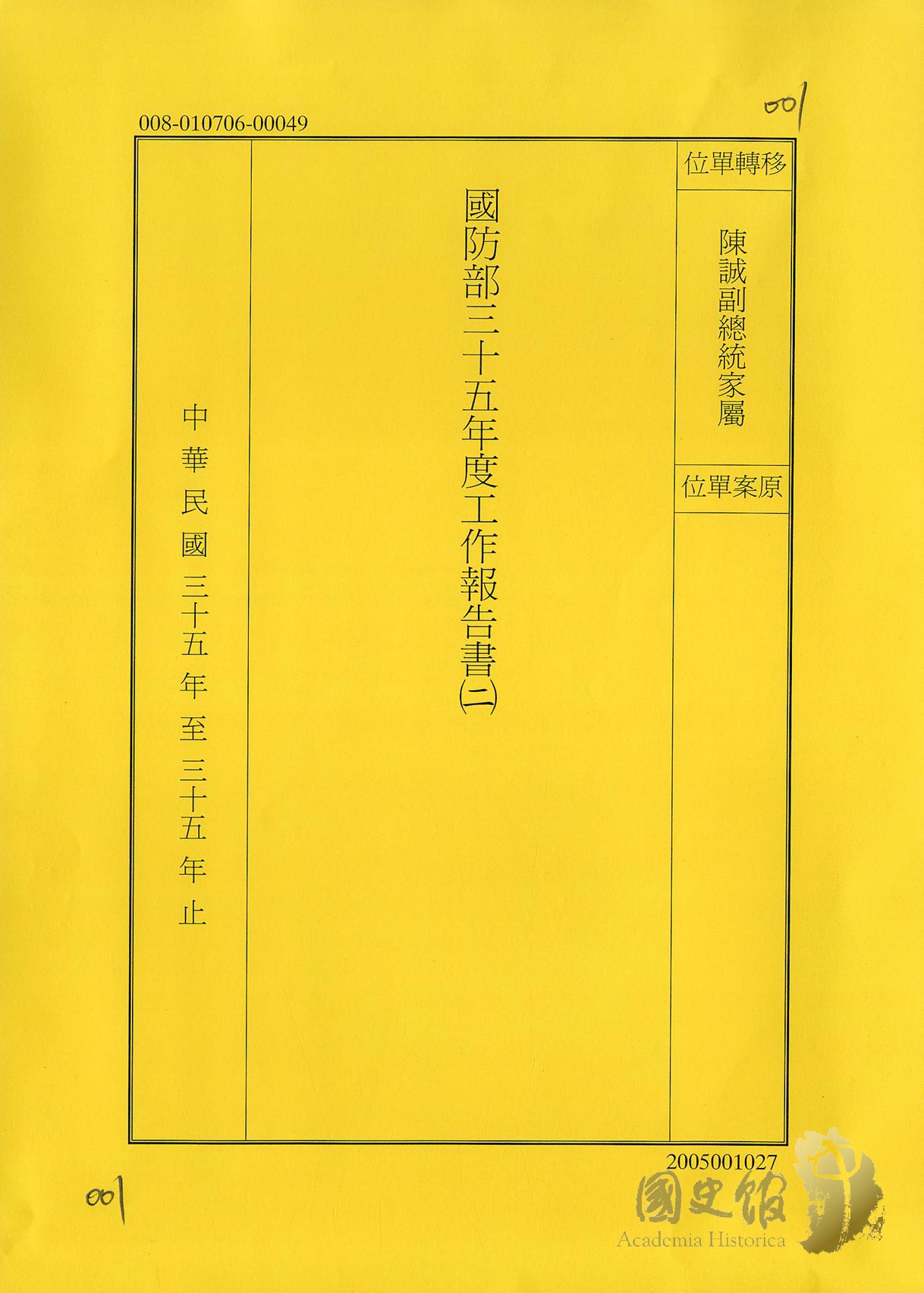 陳誠副總統文物/文件/軍事國防/參考資料與研究調查