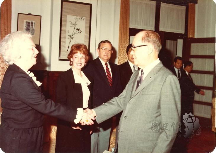 副總統{#謝東閔#}由國大代表{#謝隆盛#}陪同接見美聖馬太巿巿長{#珍.貝克#}等人