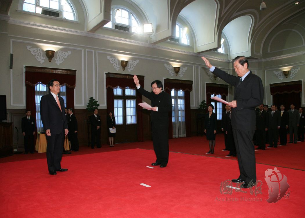總統{#陳水扁#}主持新任總統府秘書長{#邱義仁#}及國安會秘書長{#陳唐山#}宣誓暨交接典禮