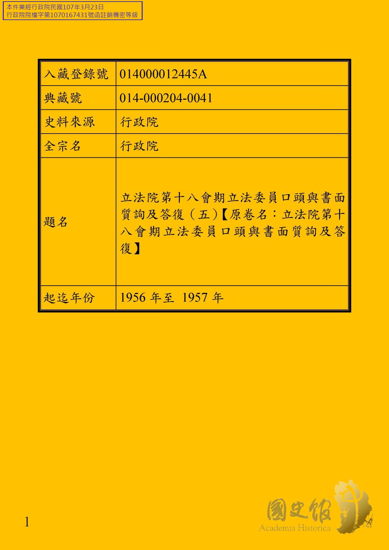 立法院第十八會期立法委員口頭與書面質詢及答復(五)【原卷名:立法院第十八會期立法委員口頭與書面質詢及答復】
